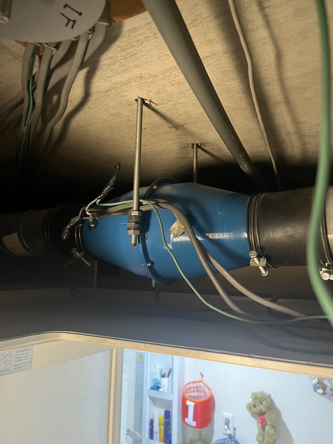 換気扇工事は久しぶりで狭い場所での作業は身体の大きい僕にとっては一番苦手な作業です(笑)